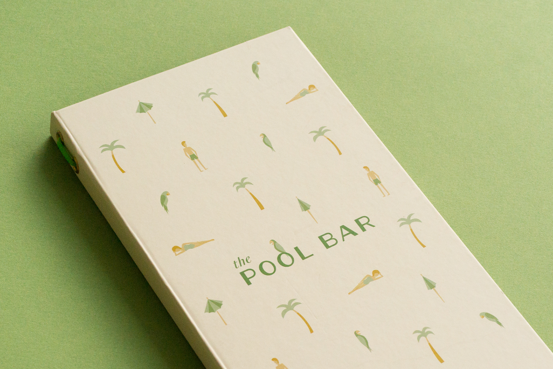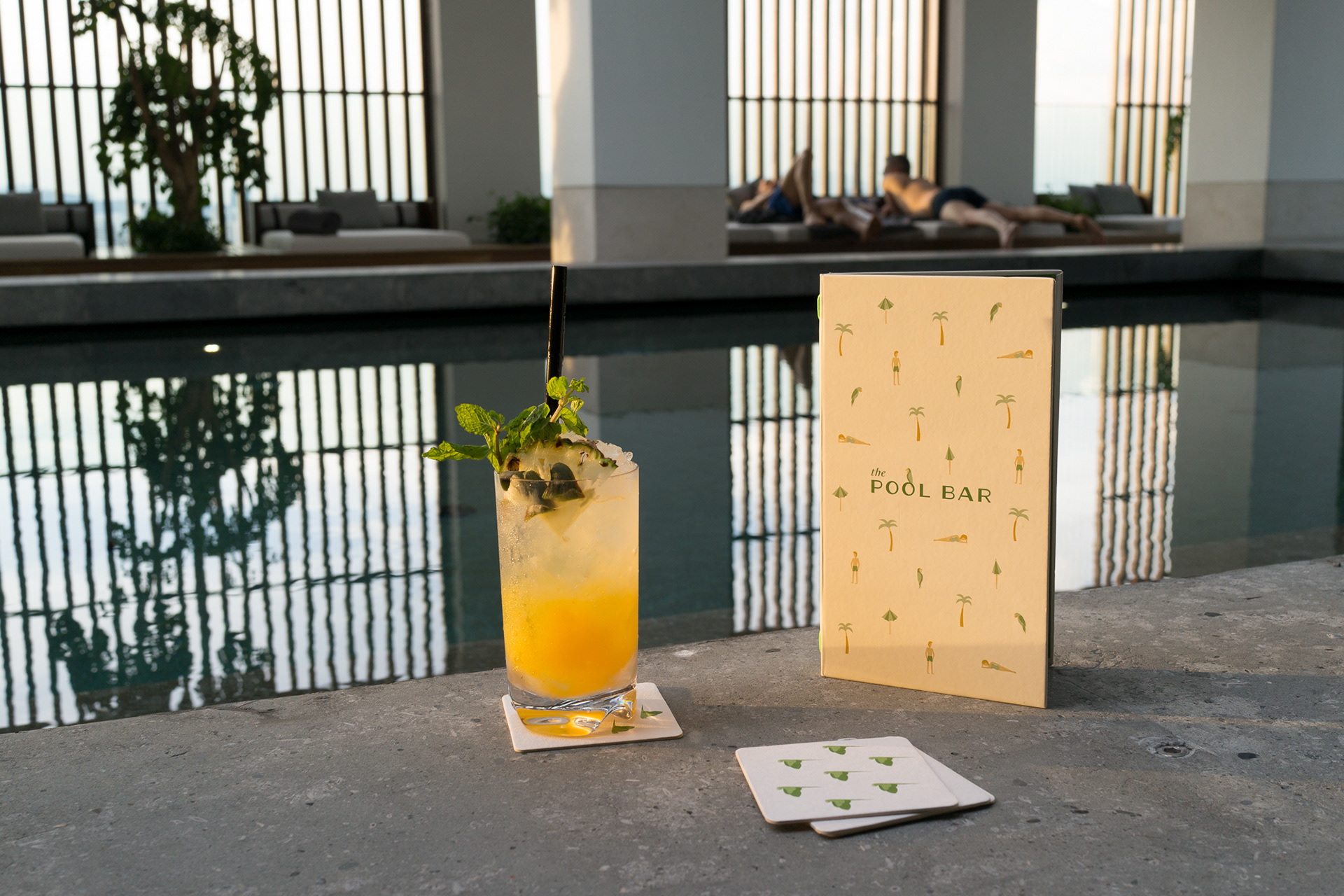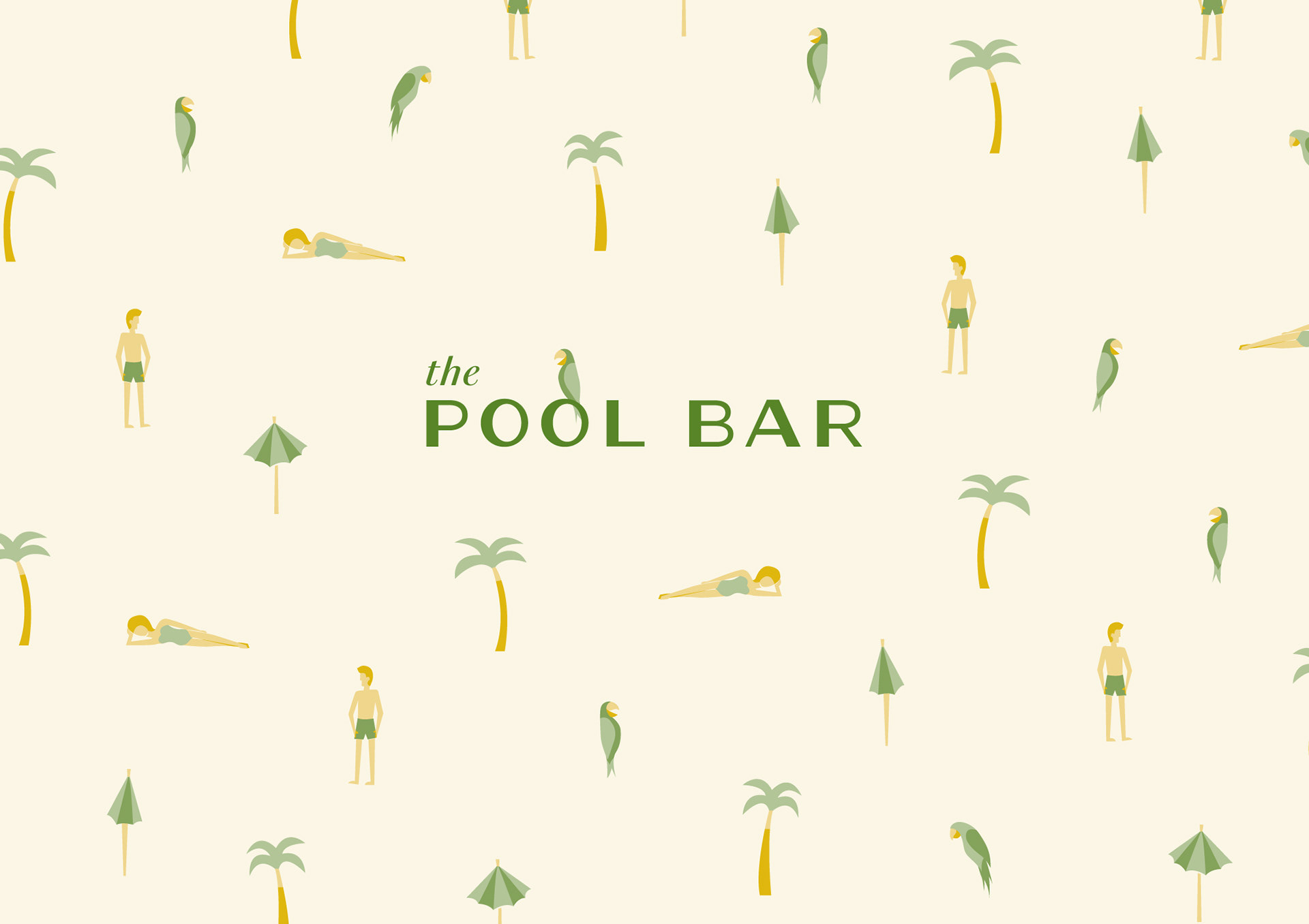 The Pool Bar has a fun tiki beach vibe whilst still being classy enough to be in a 5 star hotel. The identity promotes the centrepiece of the hotel lobby: the pool on the 40th floor.