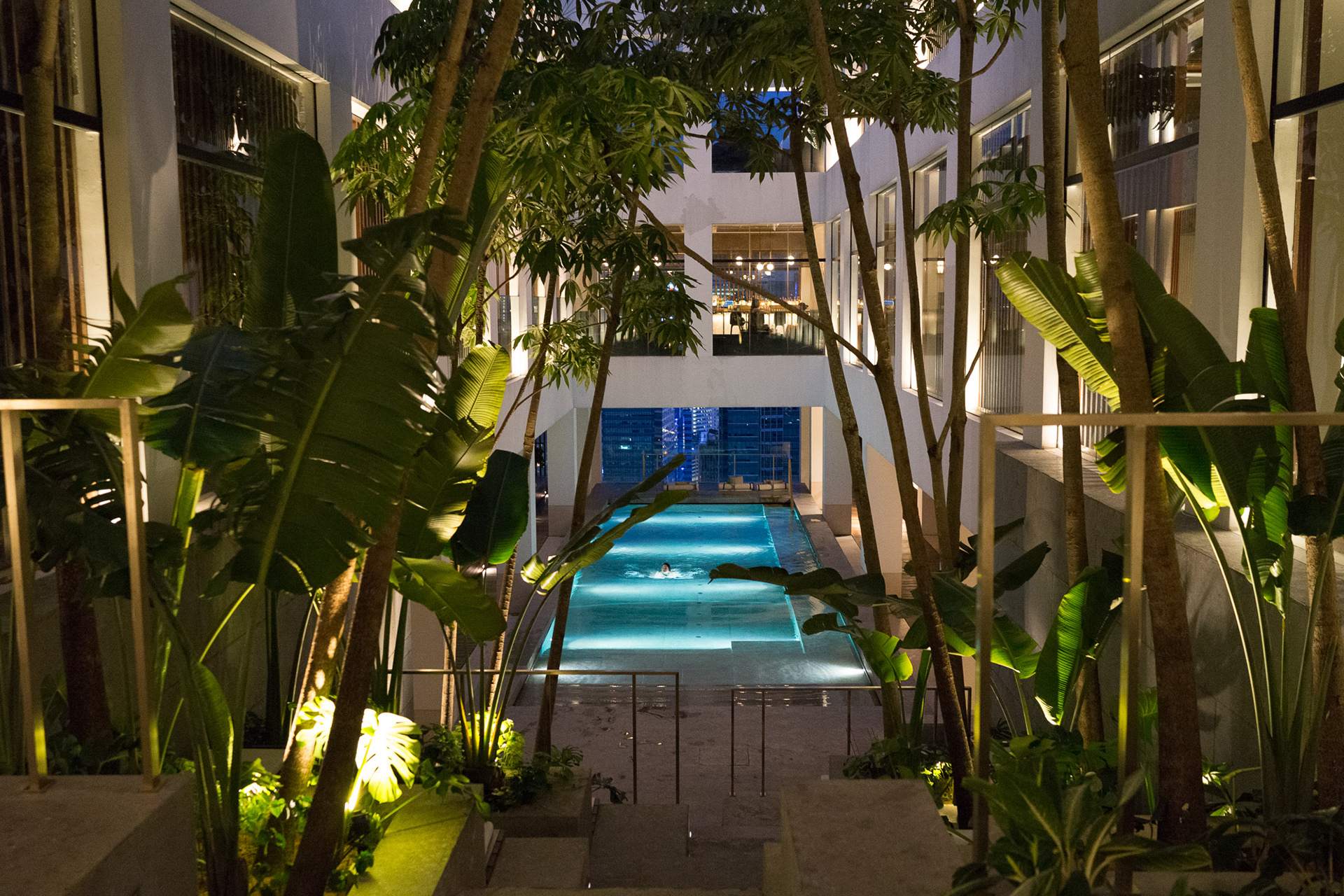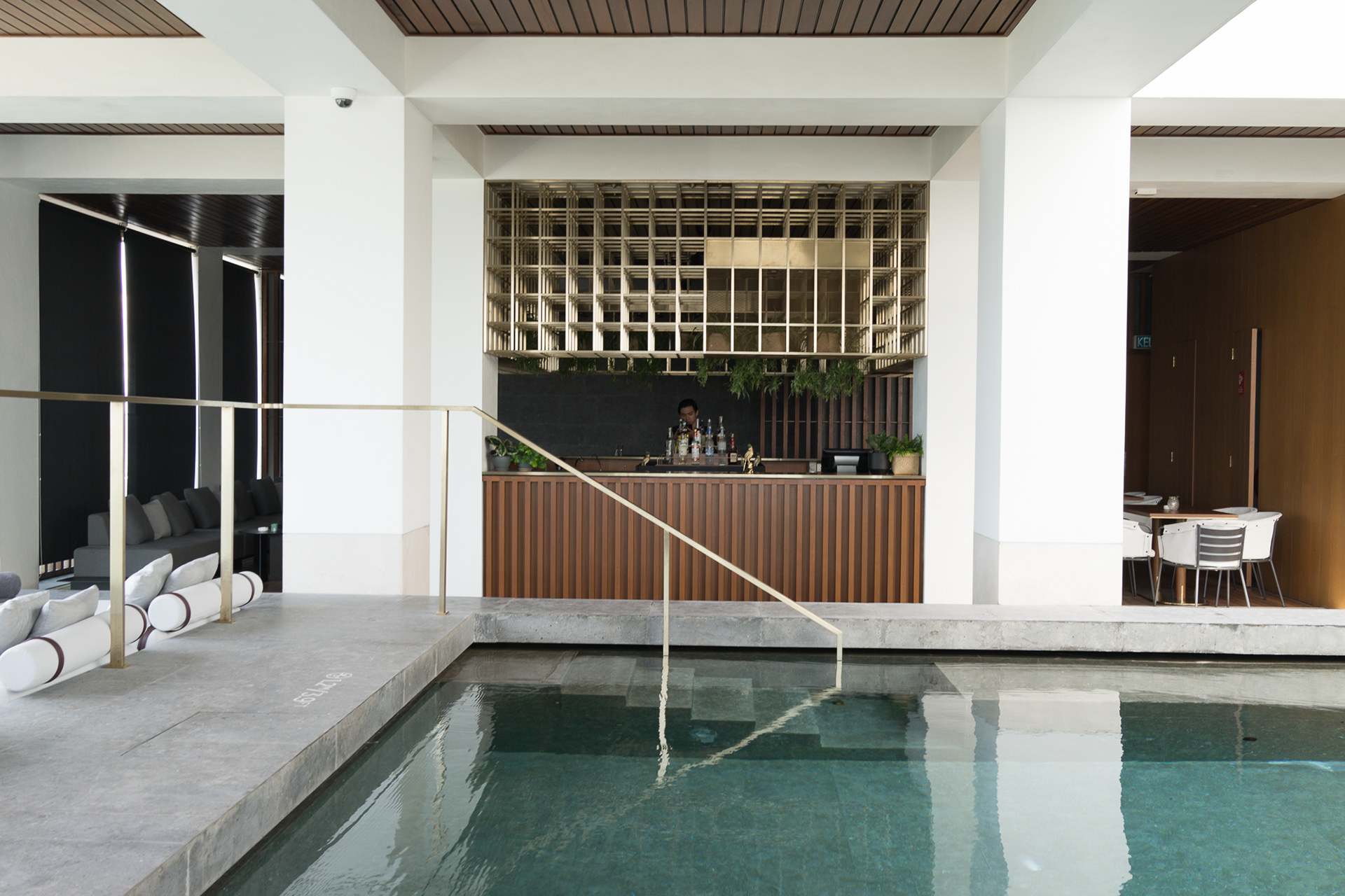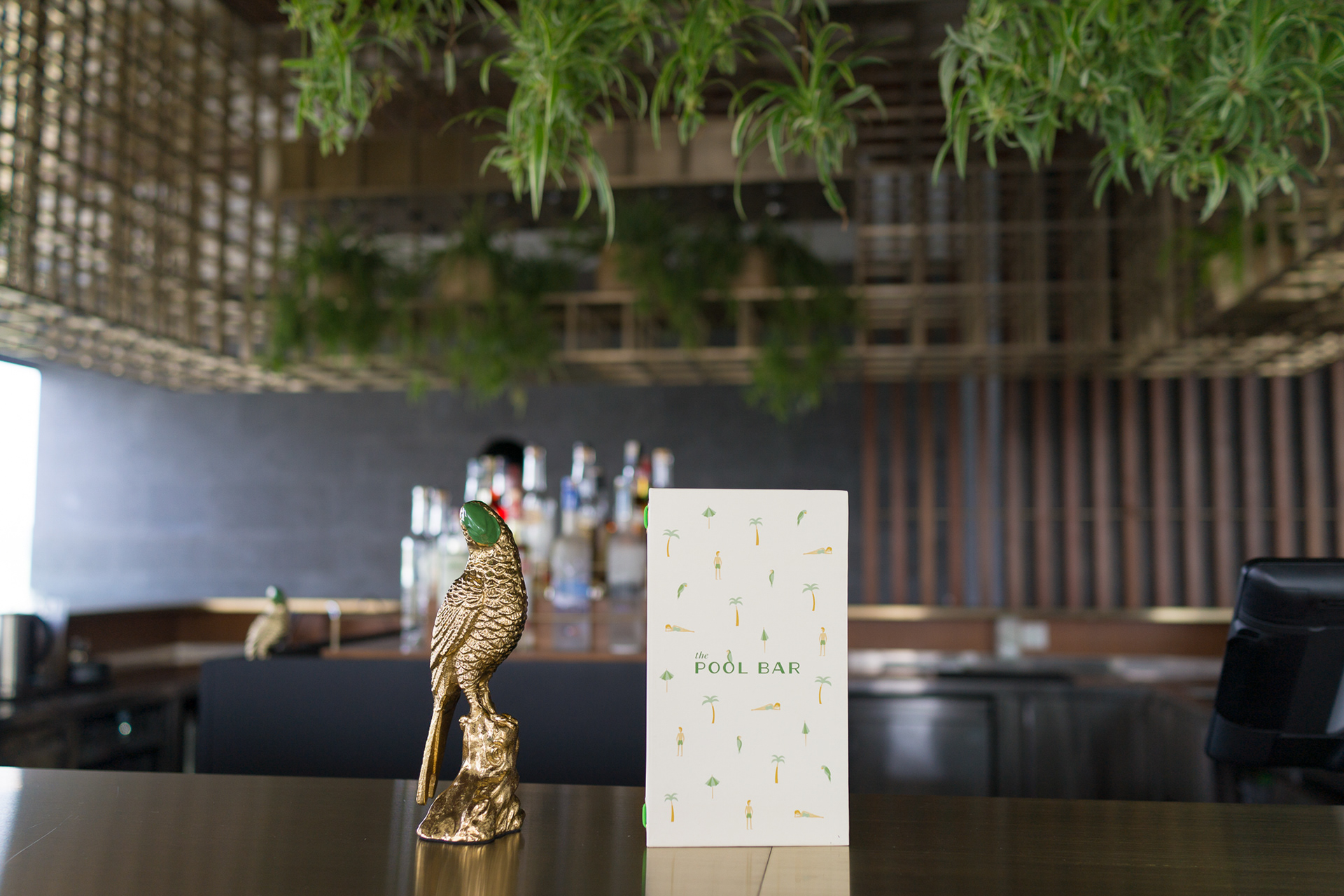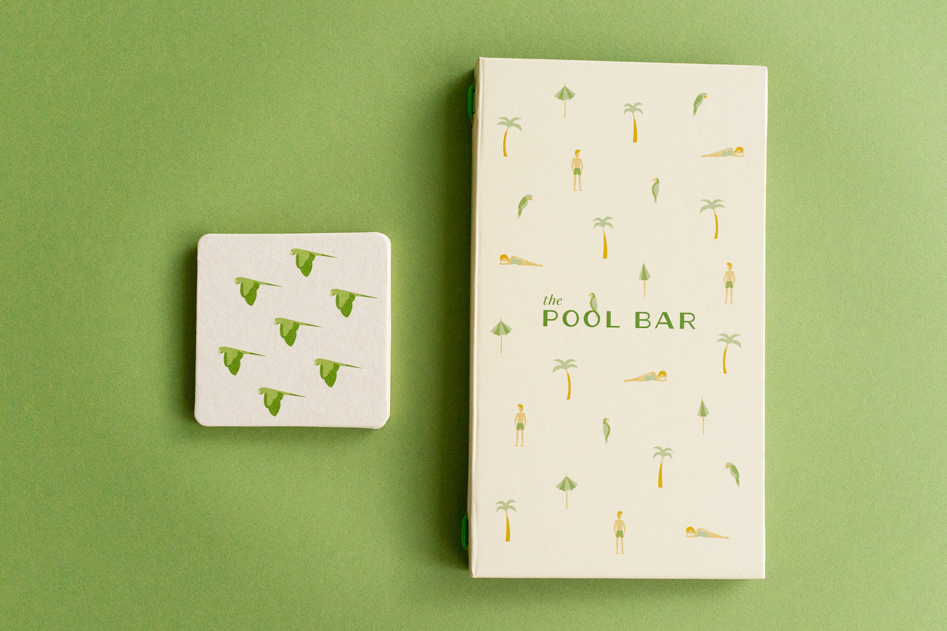 The Pool Bar has a fun tiki beach vibe whilst still being classy enough to be in a 5 star hotel. The identity promotes the centrepiece of the hotel lobby: the pool on the 40th floor.